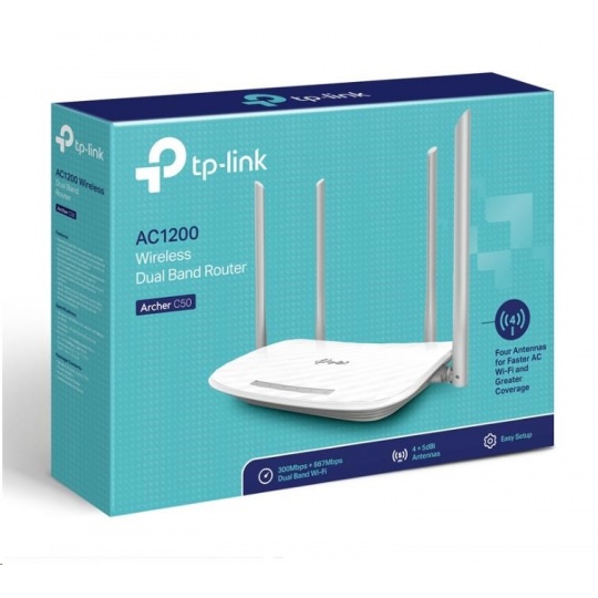 TP-Link Archer C50 WiFi5 router (AC1200, 2,4GHz/5GHz, 4x100Mb/s LAN, 1x100Mb/s WAN)