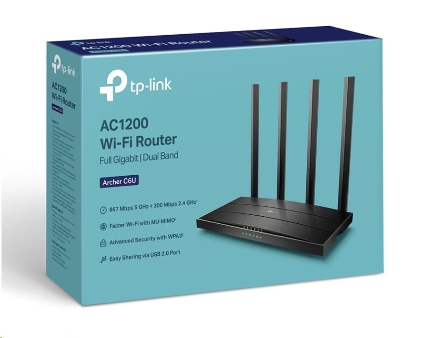 TP-Link Archer C6U OneMesh/EasyMesh WiFi5 router (AC1200, 2,4GHz/5GHz, 4xGbELAN, 1xGbEWAN, 1xUSB2.0)