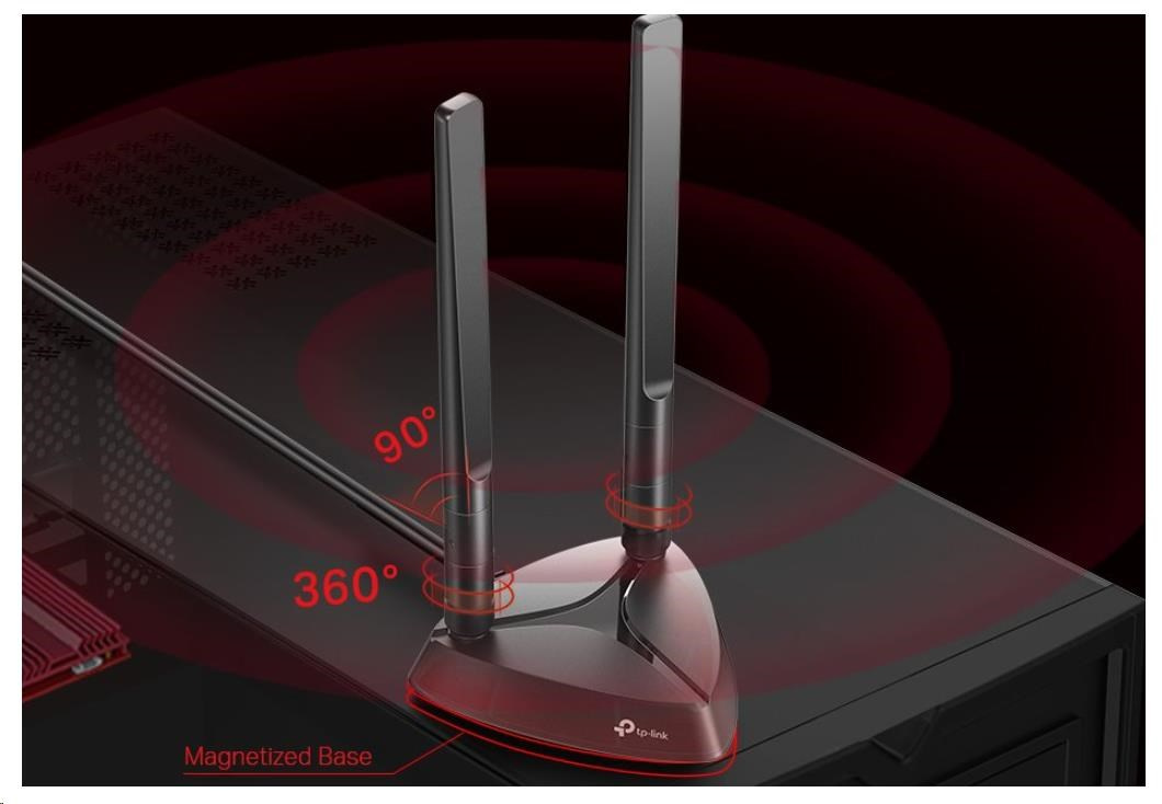 | Package Contents | Archer TX3000E Magnetized Antenna Base with 1m RF Cable Two 5 dBi High Gain Antennas Low-Profile Bracket Bluetooth Header Cable Quick Installation Guide Resource CD |