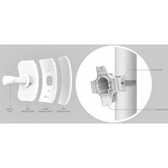 - Směrová anténa s vysokým ziskem až 23dBi a speciálním kovovým reflektorem, ideální pro aplikace na velké vzdálenosti