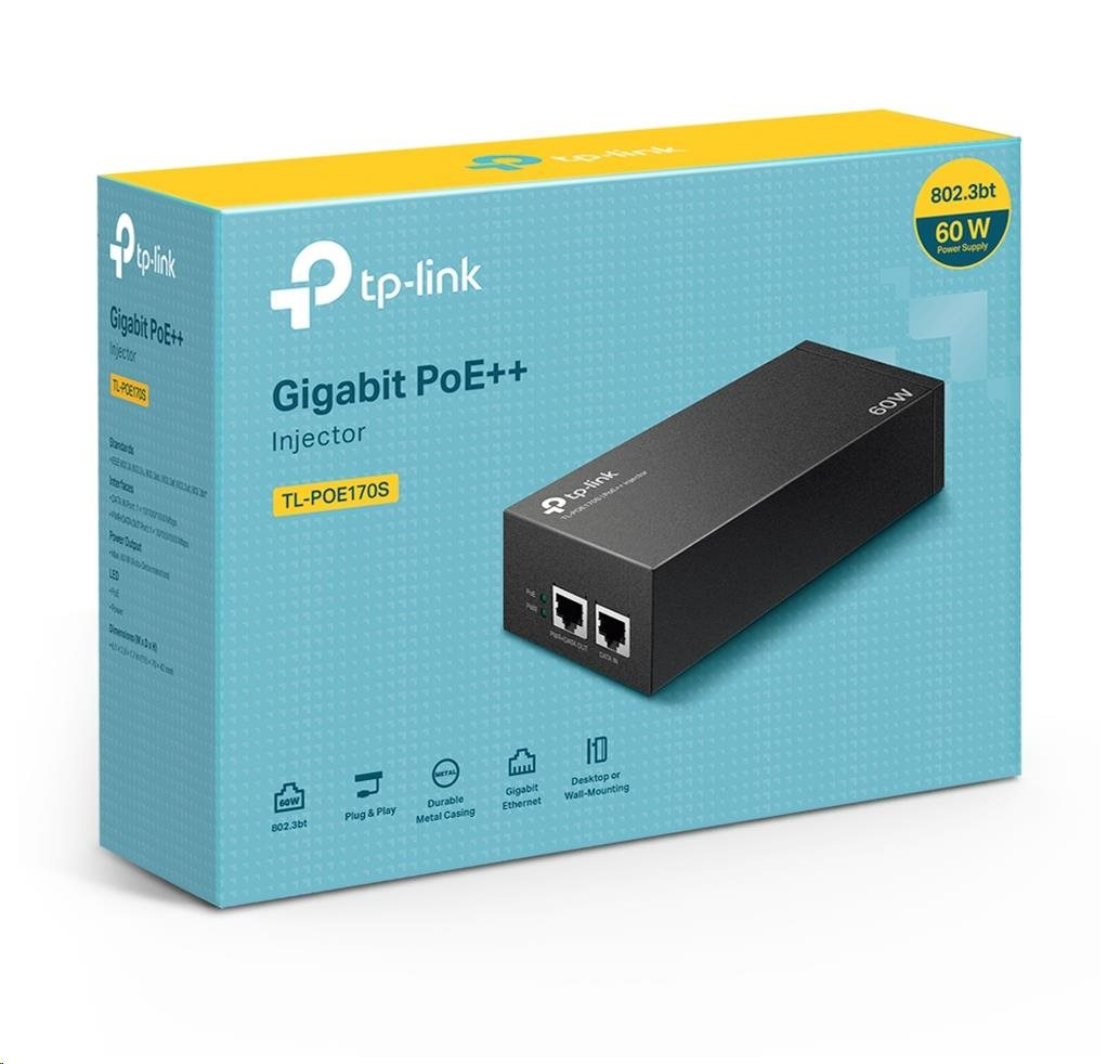 PoE++ injektor TL-POE170S plně vyhovuje standardům IEEE 802.3af/at/bt* a poskytuje napájecí výkon až 60W. Může snadno rozšířit vaši síť tam, kde není žádné elektrické vedení nebo zásuvka pro připojení zařízení, jako jsou PTZ IP kamery, Wi-Fi přístupové body, LED atd.
