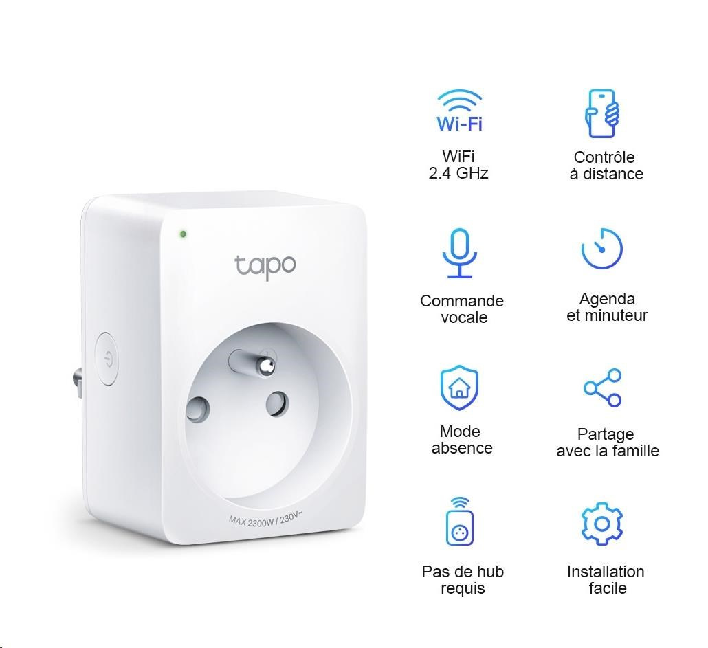 TP-Link Tapo P100(2-pack) chytrá WiFi mini zásuvka (2300W,10A,2,4 GHz,BT)