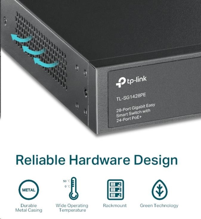 TP-Link Easy Smart switch TL-SG1428PE (26xGbE, 2xSFP, 24xPoE+, 250W)