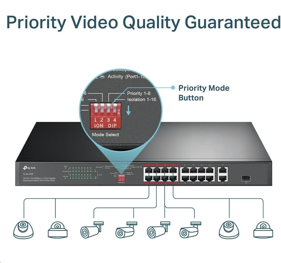 TP-Link CCTV switch TL-SL1218P (16x100Mb/s, 1xGbE uplink, 1xGbE/1xSFP combo uplink, 16xPoE+, 150W)