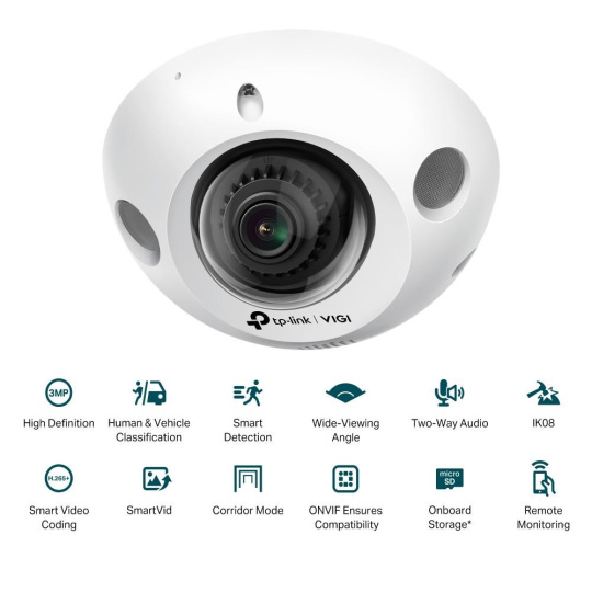 - Velmi vysoké rozlišení 3 MPx: Kamera VIGI C230I Mini má rozlišení 3 MPx – více než dost pixelů na zachycení některých diskrétnějších detailů.
