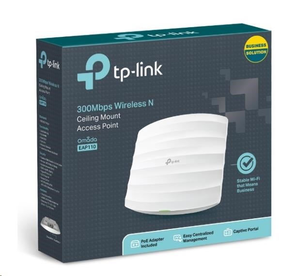 | Package Contents | 300Mbps Wireless N Ceiling Mount Access Point EAP110 Passive PoE Adapter, Power Cord, Mounting Kits, Installation Guide |