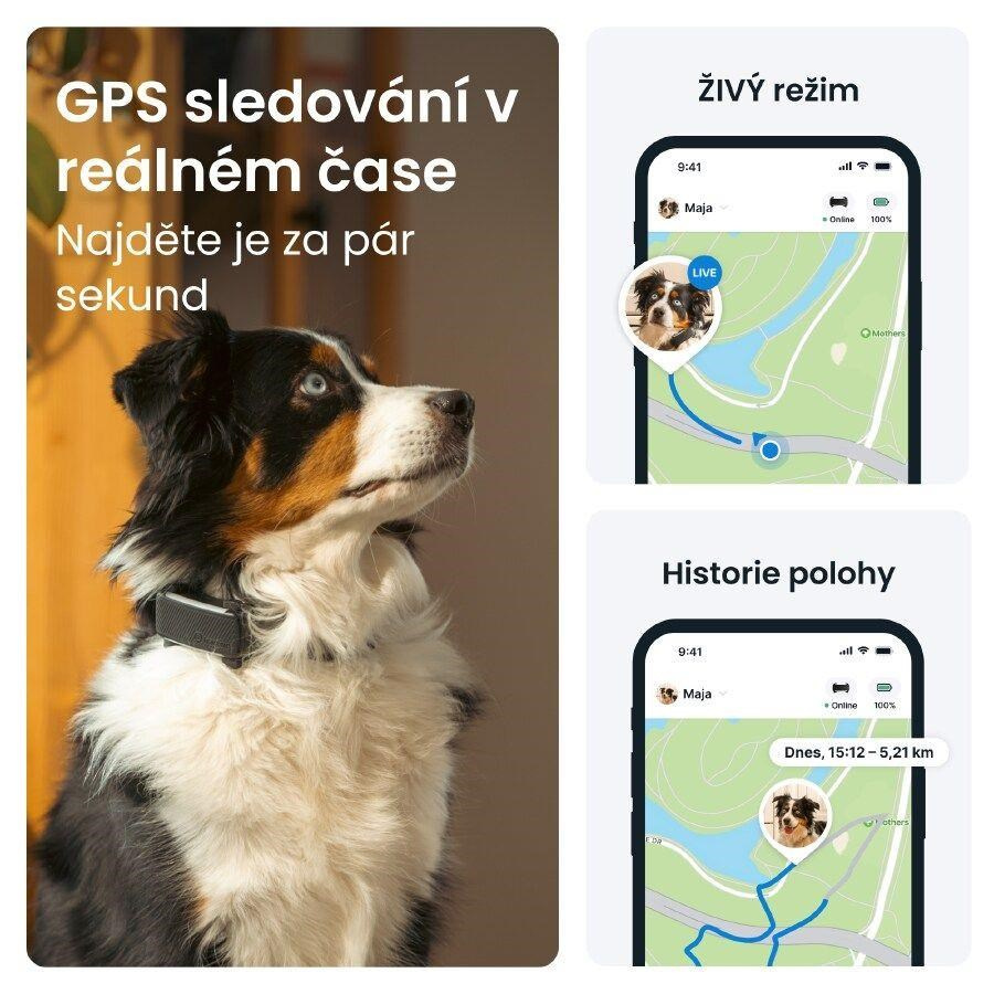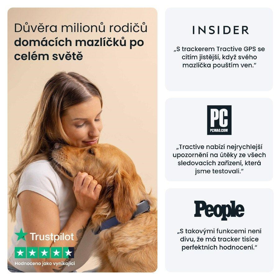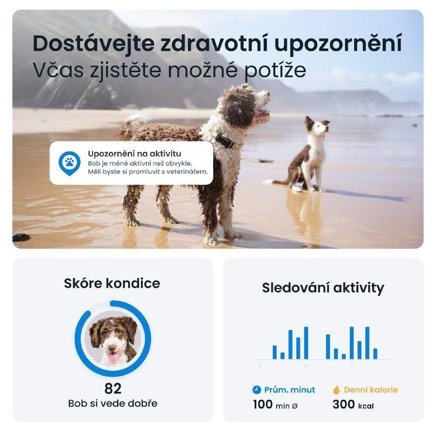 GPS tracker Tractive vás informuje, jak moc se váš pes pohybuje, spí a štěká. Můžete nastavit cíle pohybu, kontrolovat Skóre kondice a porovnávat svého psa s jinými plemeny.Odolná konstrukce