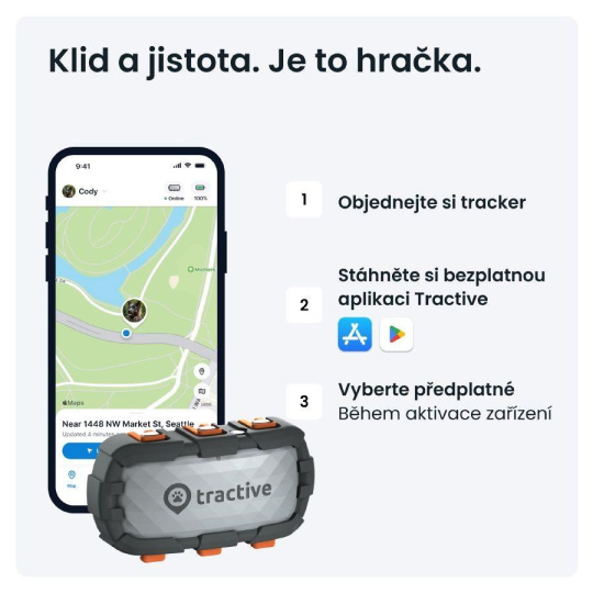 *Cena s předplatným na 2 roky a jednorázovou platbou předem. Ceny se mohou změnit. Nejnovější informace najdete na adrese tractive.com/plans.