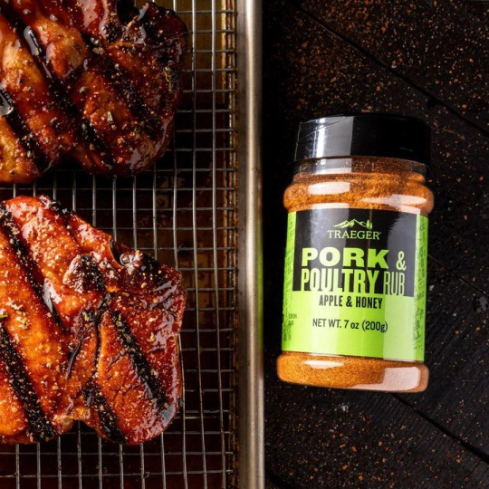 Od vepřových kotlet až po kuře na rožni – dodávejte všem druhům bílého masa extra dávku chuti s kořením Traeger Pork & Poultry Rub. Paprika, cibule a chilli papričky dodávají pikantní chuť, zatímco jablko a med přidávají nádech sladkosti, který se perfektně hodí k vepřovému, kuřecímu a jiným jemnějším druhům masa.