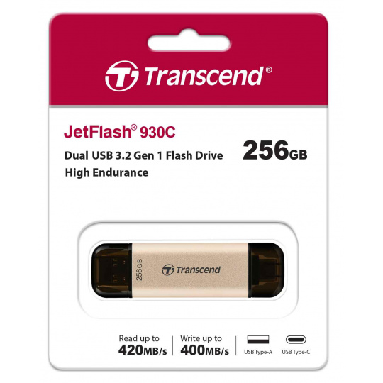 TRANSCEND Flash Disk 256GB JetFlash®930C, TLC, USB 3.2/USB Type C (R:420/W:400 MB/s) černý