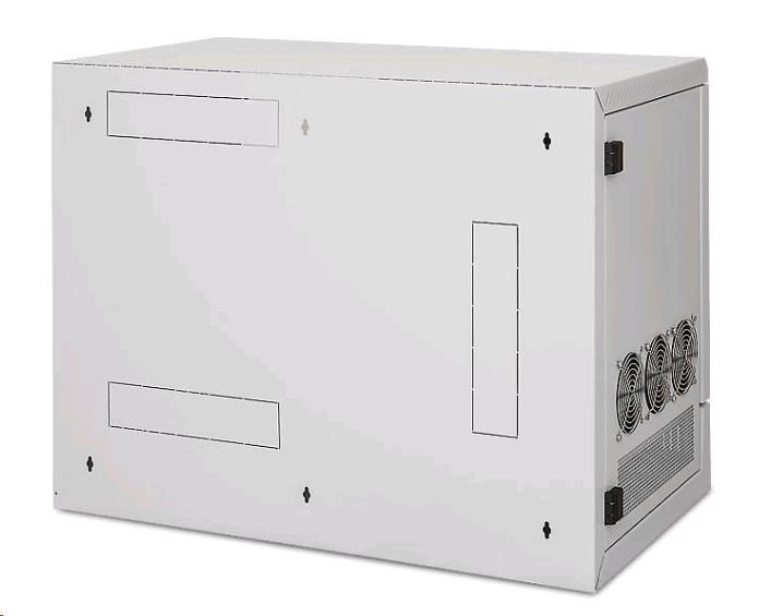 Chlazení provětráváním díky perforaci skeletu a bočních dvířek je možno podpořit instalací ventilátorů pro nástěnné rozvaděče (RAX-CH-X07)