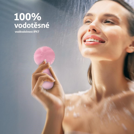 Čisticí kartáček je vyroben ze zdravotnického silikonu a zcela voděodolný s krytím IPX7, lze jej tak bezpečně používat i ve sprše.