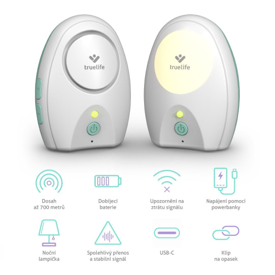 Chcete mít své miminko pod dohledem a reagovat na jeho potřeby, i když zrovna spinká v jiné místnosti? Digitální audio chůvička TrueLife NannyTone VM Pocket se spolehlivým přenosem a praktickými funkcemi pohlídá miminko za vás. Obě jednotky jsou dobíjecí, takže se stanou vaším pomocníkem nejenom v domácnosti, ale i na cestách. Pomocí USB-C pak snadno chůvičku dobijete ať už ze zásuvky nebo pomocí powerbanky. Díky spolehlivému přenosu signálu s dosahem až 700 metrů máte své dítě vždy pod dohledem a neunikne vám jediné škytnutí.
