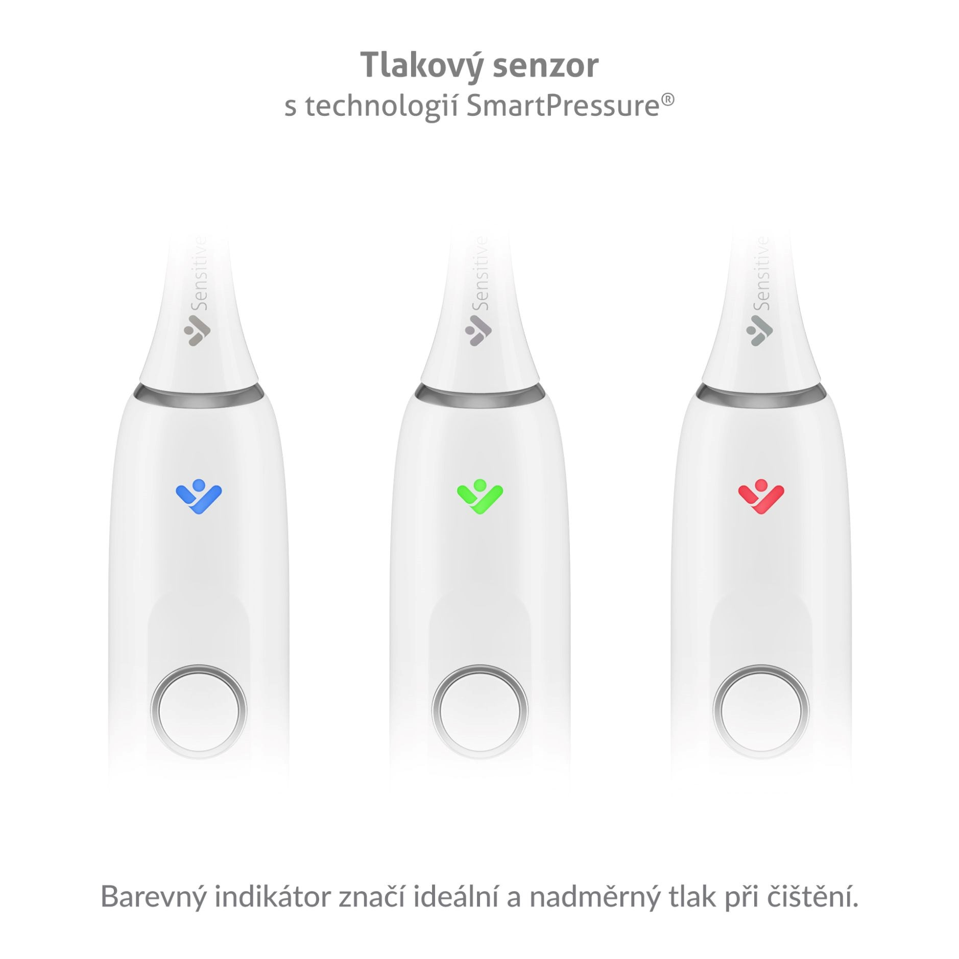 Aby přílišný tlak hlavice na zuby a dásně nezpůsobil zdravotní obtíže, je kartáček vybaven tlakovým senzorem, který míru tlaku rozezná a barevným indikátorem viditelným z přední i zadní strany upozorní, zda je třeba při čištění zvolnit.