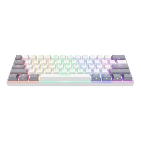 Kompaktní mechanická herní klávesnice v 60% formátu s lineárními spínači (Outemu Red) a plným RGB podsvícením. Nabízí tri-mode připojení (2,4GHz USB přijímač, Bluetooth pro dvě zařízení a USB-C kabel) a funkci N-key rollover pro bezchybné snímání stisků. Díky minimálním rozměrům uvolňuje prostor pro pohyb myši, přičemž veškeré chybějící klávesy jsou dostupné přes funkční vrstvy.