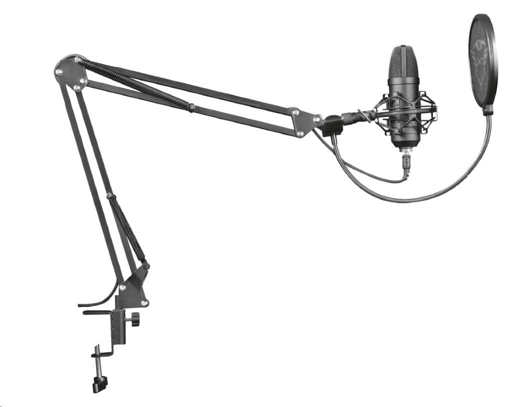 - Adjustable, desk mounting clamp to place the microphone in the most convenient position