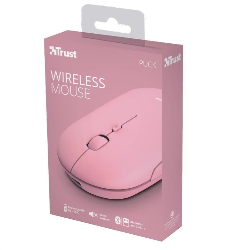 TRUST myš PUCK, bezdrátová, USB, růžová