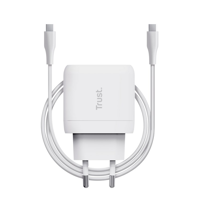 TRUST nabíječka 45W Maxo, USB-C, Nabíječka do zdi, 2m USB-C kabel, bílá