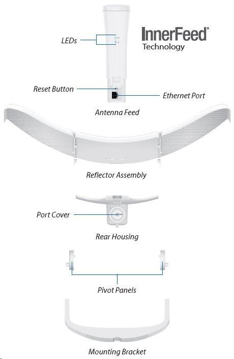 LiteBeam 5AC-LR kombinuje proprietární hardwarové a softwarové technologie do cenově dostupného zařízení. Mezi výhody patří InnerFeed technologie, airMAX TDMA protokol, vylepšený držák a vestavěná vodováha umožňující velmi rychlé a správné nasazení a také velmi kompaktní rozměry pro úsporu nákladů při přepravě.