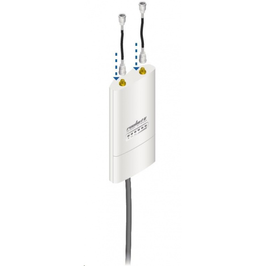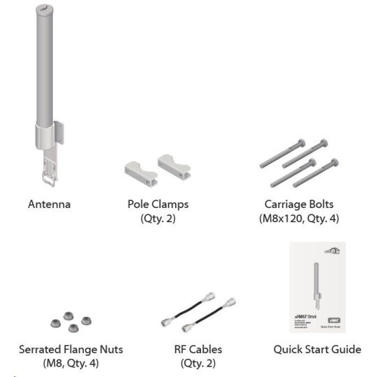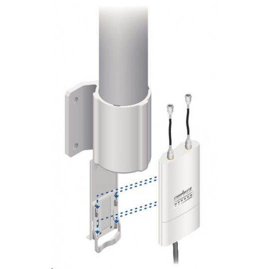 Jedná se o robusní řešení 10dbi všesměrové antény pro přístupové body pracující v pásmu 2.4GHz a využívajících standardu 802.11n v kombinaci s technologií MIMO. Anténa disponuje dvěma RSMA-female konektory. Součástí dodávky jsou dva voděodolné RSMA pigtaily pro propojení s jednotkou Rocket M2, držák pro tuto jednotku a montážní sada na stožár, viz. obr.