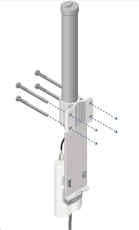 Jedná se o robusní řešení 10dbi všesměrové antény pro přístupové body pracující v pásmu 5GHz a využívajících standardu 802.11n v kombinaci s technologií MIMO. Anténa disponuje dvěma RSMA-female konektory. Součástí dodávky jsou dva voděodolné RSMA pigtaily pro propojení s jednotkou Rocket M5, držák pro tuto jednotku a montážní sada na stožár, viz. obr.