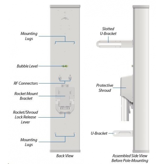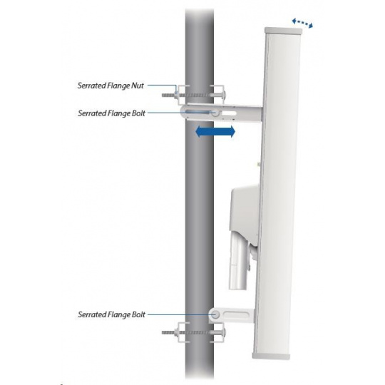 Dvoupolarizační sektorová 15dBi anténa vhodná pro jednotku Rocket M2 (2x2 MIMO). Vyzařovací úhel 120°. Využívá horizontální i vertikální polarizaci, čímž nahrazuje dvě samostatné antény a lze tak jednoduše vytvořit přístupový bod s vysokou propustností.