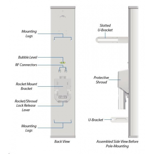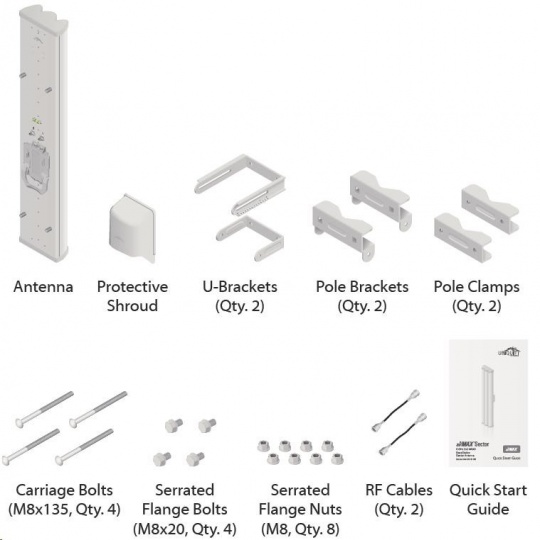 Dvoupolarizační sektorová 19dBi anténa (120°) vhodná pro jednotku Rocket M5 (MIMO). Využívá horizontální i vertikální polarizaci, čímž nahrazuje dvě samostatné antény a lze tak jednoduše vytvořit např. přístupový bod s vysokou propustností. S anténou je dodáváno i příslušenství pro instalaci a voděodolné propojení s jednotkou Rocket M5.