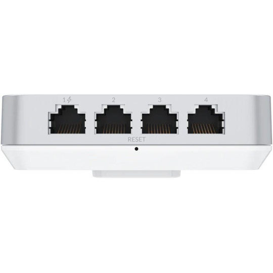 Kromě přívodního Gigabitového portu na zadní straně má také další 4 Gigabitové porty na spodní straně, kdy na prvním z těchto portů je možné využít funkci PoE passthough.