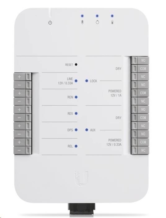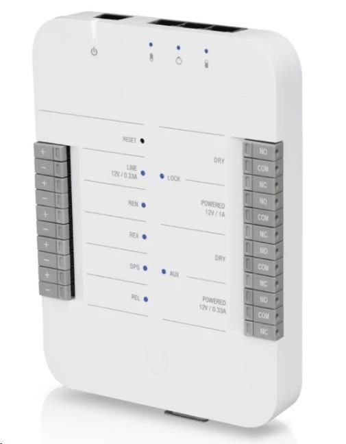 UniFi Access Hub je základní komponenta k instalaci přístupového systému UniFi Access. UniFi Access Hub je inteligentní jednodveřový IP kontroller, který je kompatibilní s většinou elektrických zámků, magnetických zámků a s celou řadou 12V příslušenstvím jako jsou pohybové senzory, tlačítka a alarmy. Instalace je velmi rychlá, snadná a nabízí jednoduchou správu uživatelů, návštěvníků, plánů a úrovní či oprávnění přístupů přes UniFi Access Controller. Hub je napájen přes PoE, které není součástí dodávky.