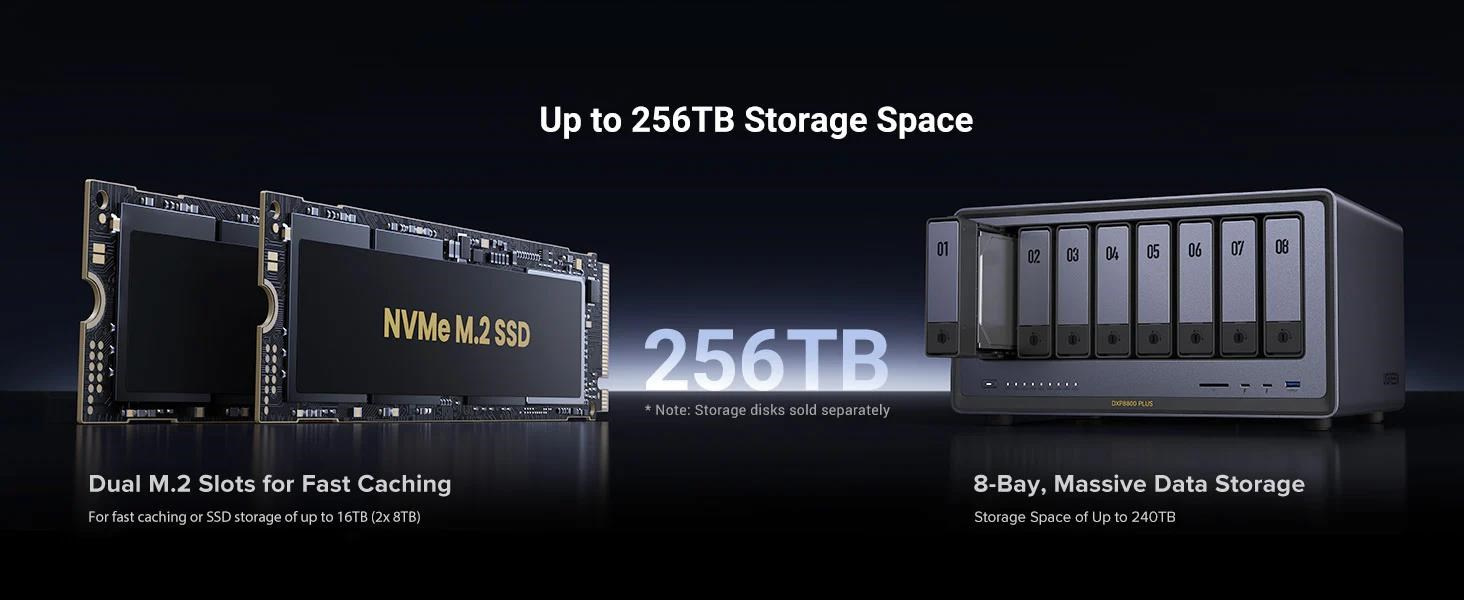 Maximální kapacita úložiště196TB (6x 30TB + 2x 8TB)