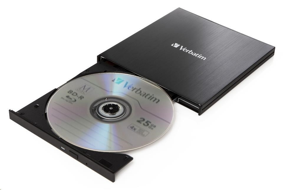 VERBATIM externí mechanika Ultra HD 4K Blu-ray External Slimline Writer (USB 3.1, USB-C) + zdarma 25GB médium +NERO