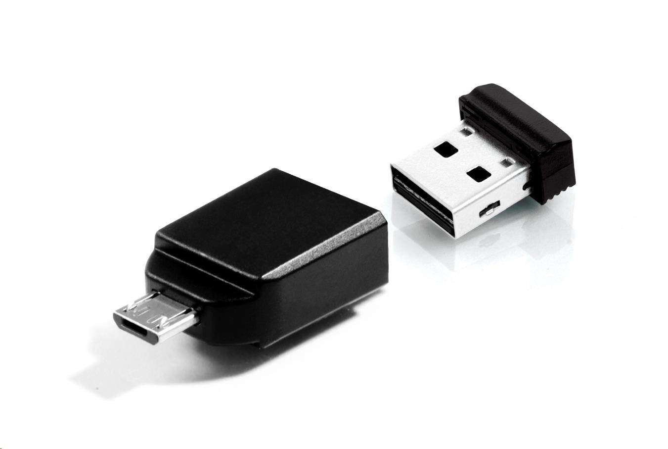 VERBATIM Flash Disk 32GB Store 'n' Stay Nano + micro USB OTG adaptér, USB 2.0, černá
