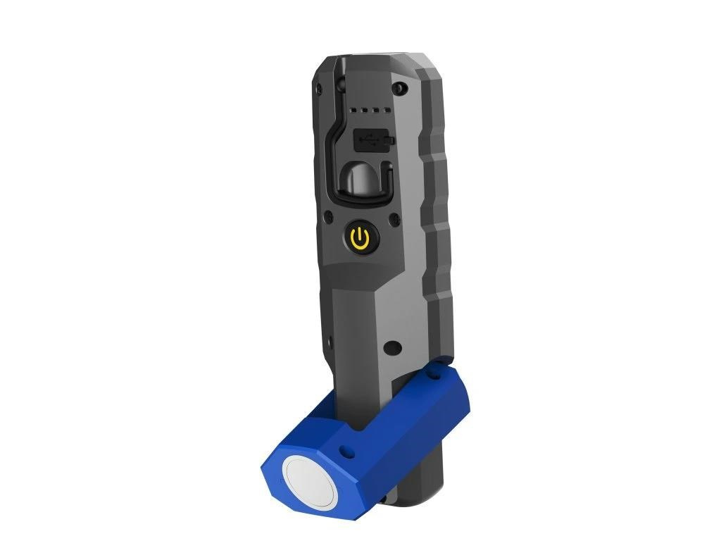 - Praktické možnosti uchycení: Baterka je vybavena háčkem na horní části pro snadné zavěšení, magnetem na spodní straně pro připevnění k kovovým povrchům a ohebným držákem, který umožňuje postavení baterky do požadovaného úhlu.