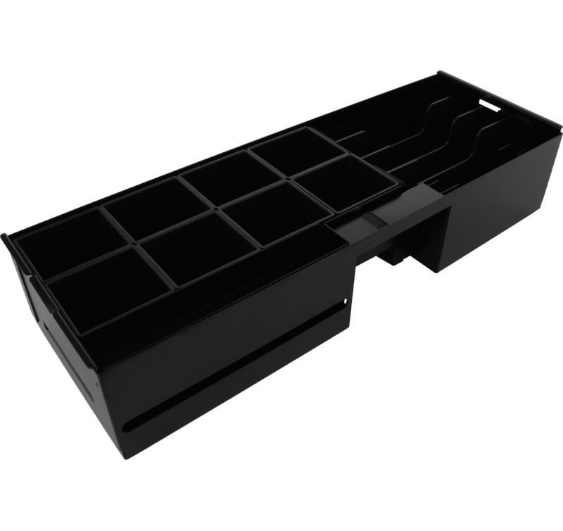 • Vyjímatelný kovový zásobník na bankovky s plastovými oddělovači přihrádek