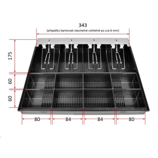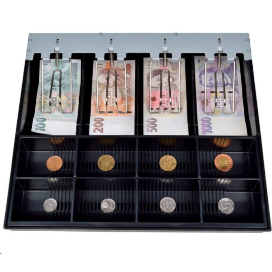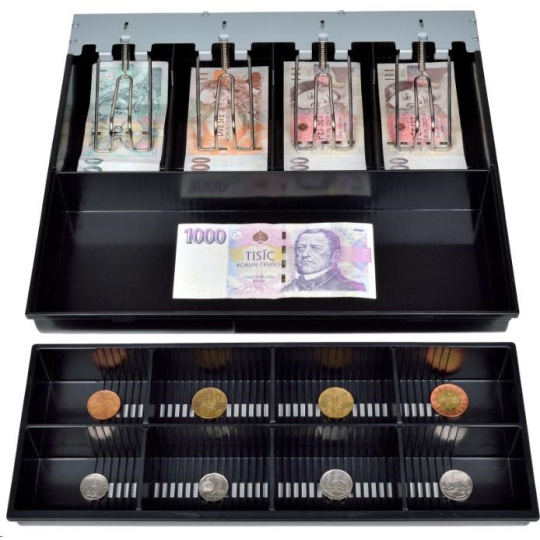Vyjímatelný mincovník a pořadač bankovek s libovolně nastavitelnými přihrádkami