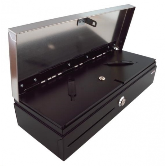 Virtuos pokladní zásuvka flip-top FT-460C2 - s kabelem, se zamykacím krytem, NEREZ víko, černá