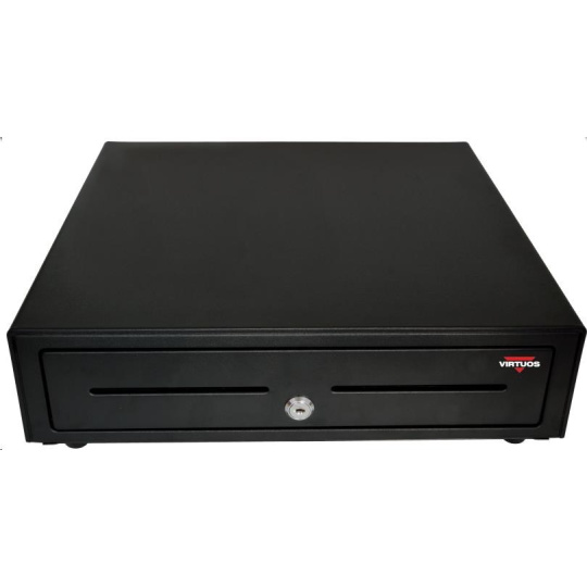 Virtuos pokladní zásuvka S-410C - s kabelem, pořadač 4/8, 9-24V, černá