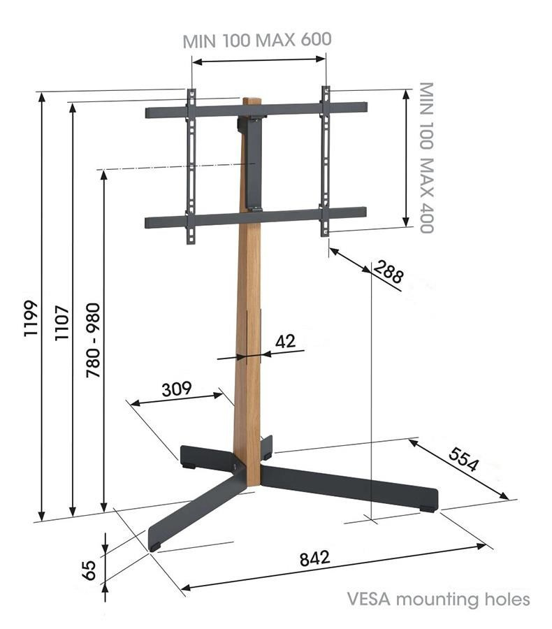 Vogel's TV 40-77'', natáčení ±45°, VESA 600x400 mm, výška středu VESA 780-980 mm, 50 kg, dub + černá ocel