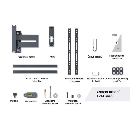 Jedním prstem můžete televizor přesunout do požadované polohy. Nástěnný držák TVM 3443 je vybaven funkcí One-Finger™ Movement. Díky speciálním ložiskům je pohyb nástěnného držáku velmi plynulý a lehký. Pro bezpečné naklápění a fixaci televizoru je držák vybaven jedinečným systémem TiltAnchor™, který uzamkne náklon TV ve svislé poloze.