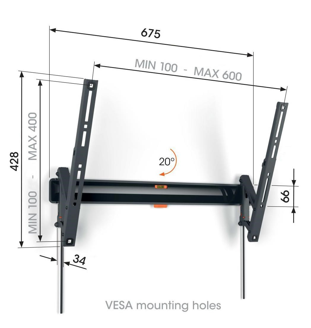 Hledáte bezpečný a stylový nástěnný držák na televizor pro svůj velký plochý televizor? Takový, který můžete naklonit, protože chcete televizor připevnit na stěnu o něco výš, například v ložnici? Pokud ano, tento nástěnný držák řady COMFORT Tilt je ideální volbou. Můžete jej naklonit až o 20° a vytvořit tak ideální pozorovací úhel. Nástěnný držák je vhodný pro velké televizory s úhlopříčkou 40 až 77 palců a hmotností do 35 kg.
