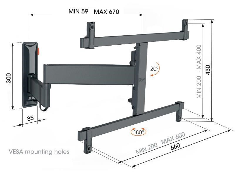 - Otočte televizor až o 180° díky 67 cm dlouhým ramenům