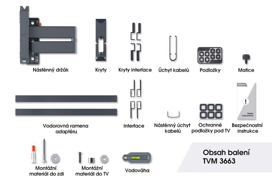 - Ochranné podložky mezi TV a držákem - chraní zadní stranu TV před poškrábání držákem