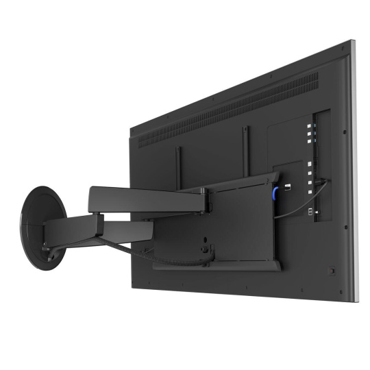 TV držák DesignMount má důmyslný čtyřramenný mechanismus s dlouhými a silnými nosnými rameny. Díky tomu má velký rozsah pohybu dopředu a umožňuje posunout televizor až o 72 cm od stěny. Ideální pro montáž do skříňky nebo výklenku.