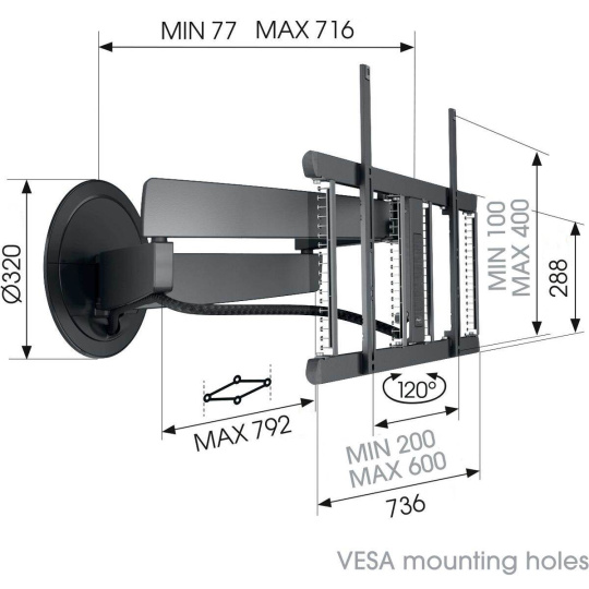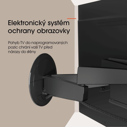 MotionMount má velký rozsah pohybu vpřed díky 4 dlouhým a silným opěrným ramenům. Motorizovaný pohyb umožňuje posunout televizor dopředu až o 72 cm. Díky tomu je nástěnný držák televizoru vhodný i pro montáž do skříně nebo výklenku.