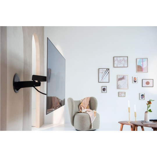 Nástěnný držák televizoru SIGNATURE MotionMount je absolutní špičkou mezi modely společnosti Vogel's. Elektricky poháněný držák se automaticky natočí směrem k vám, když zapnete televizor. Jeho propracovaný design se dokonale hodí k velkým a velmi tenkým televizorům, jako jsou televizory OLED a QLED. Držák můžete ovládat hlasem, aplikací nebo dálkovým ovladačem. Držák je vhodný pro obrazovky o velikosti 40 až 77 palců a s maximální hmotností 35 kg. Televizor můžete natočit až o 120° pro maximální požitek ze sledování.