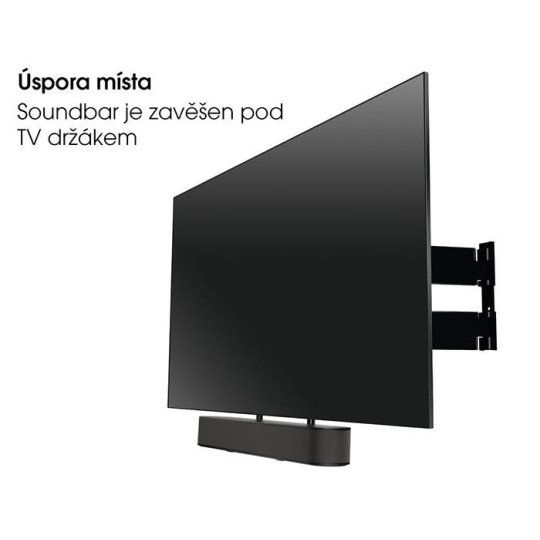 Lze namontovat prakticky na jakýkoliv TV držák. Při natáčení TV se stejně natáčí i soundbar, takže vždy budete mít ten nejlepší obraz bez degradace zvuku.