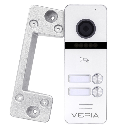 Vstupní kamerova jednotka VERIA 302 je vhodná k propojení s monitory VERIA řady 3xxx. Kamerová jednotka snímá obraz ve Full HD rozlišení, pro noční přísvit používá IR LED diody a pro kvalitní obraz IR Cut filtr. Vstupní stanice disponuje vestavěnou čtečkou RFID čipů 13,56 MHz. Propojení mezi monitorem a vstupní stanicí je 4-vodičové.