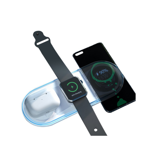 Tato bezdrátová nabíječka WG 3v1 vám umožní pohodlně a efektivně nabíjet až tři zařízení současně. Díky podpoře rychlého nabíjení s celkovým výkonem až 22,5 W je ideální pro moderní domácnosti i kanceláře.