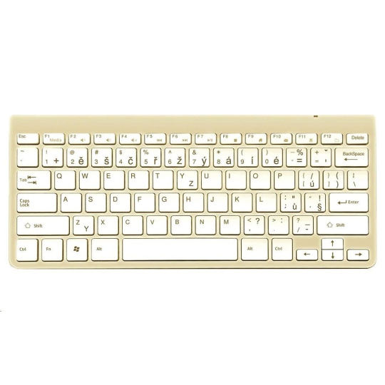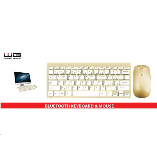 Bezdrátová sada skládající se z klávesnice a myši ve zlaté barvě vám rozhodně usnadní práci. Můžete zapomenout na zamotané kabely. Jak klávesnice, tak myš fungují prostřednictvím Bluetooth, díky čemuž se nemusíte starat o pohodlí.