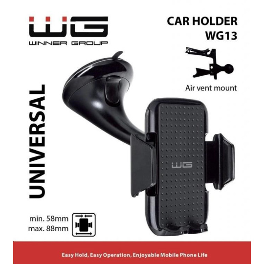 Univerzální držák na přední sklo vašeho auta. Držák přiložíte na přední sklo auta a pomocí přísavky držák nalepíte. V případě, že budete držák chtít přemístit nebo zcela sundat, je to možné provést velmi jednoduše. Mějte díky držáku svůj telefon na viditelném místě, využívejte jeho funkce a zároveň jezděte bezpečně. Vhodný pro všechny zařízení od 58 do 88 mm..